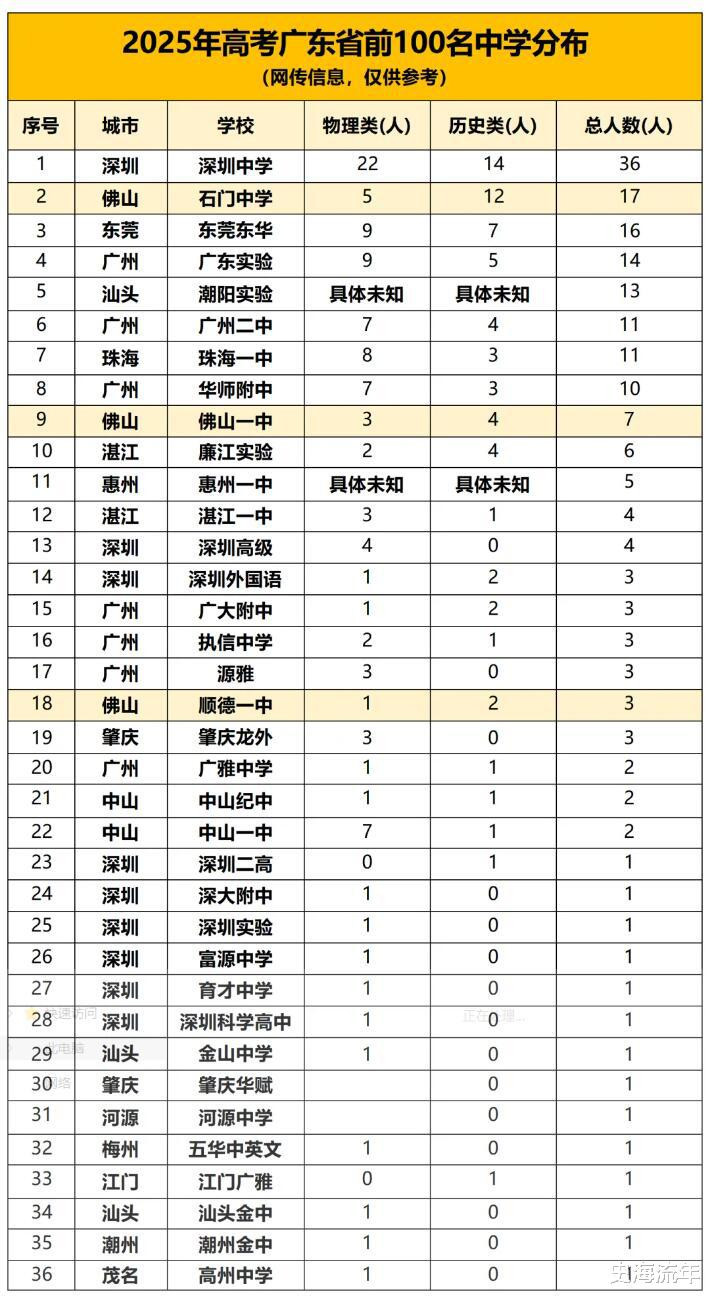 在2025年高考中,深圳中学共有36人的高考成绩进入全省前100名。其中,物理类共有22人,占全省的1/5强,历史类共14人,占比14%。以上两个数据,均位居全省第一位。